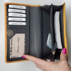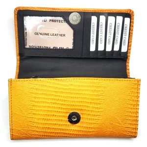 Mustard Genuine Leather Lizzard Embossed RFID Wallet NWT