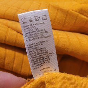 Long sleeve dress in mustard/yellow color. Crew neck. Very stretchy. Knee length. No brand tag.