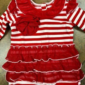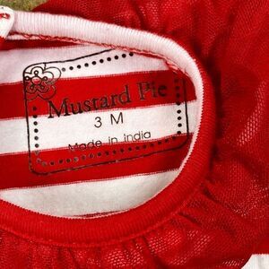 Mustard Pie Red White Stripe Ruffle One Piece 3 M. Measurements in photos. In good, pre-loved condition. Comes from a smoke free home.