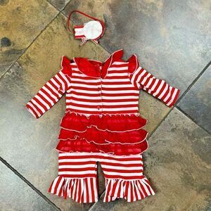 Mustard Pie Red White Stripe Ruffle One Piece 3 M