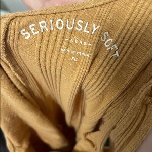 Sleeveless ribbed tank dress with front button detailing. Slim, body-skimming silhouette. Warm mustard color.