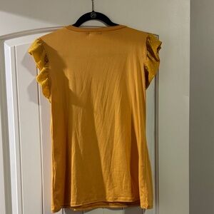 Elevate your style with this chic mustard ruffle sleeve tee. Perfect for adding a pop of color to your casual wardrobe.