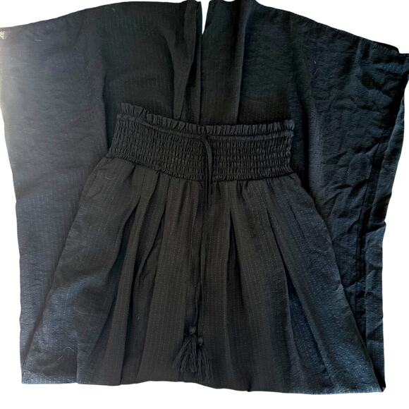 Mustard Seed Black Wide Leg Palazzo Pants Shirred High Waist Tassel M