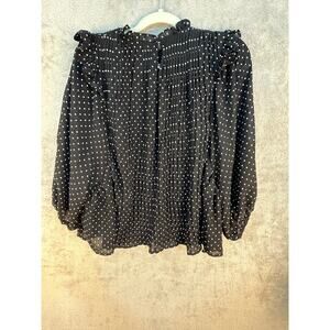 Mustard Seed Blouse Small Black Chiffon Polka Dot Ruffles Whimsigoth Twee, great condition.