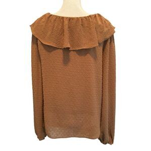 Mustard Seed Clip Dot Ruffle Lace Up Blouse Size Small Cappuccino Color