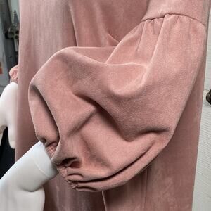Mustard Seed Dress Womens Size L Boho Peasant Rose Pink Faux Suede Balloon
