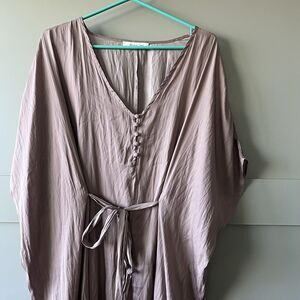Mustard Seed Jumpsuit Womens Small Brown V Neck Button Front Belted Harem Satin