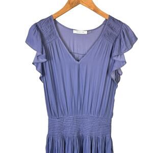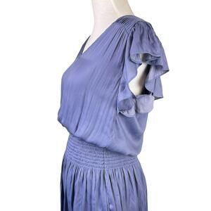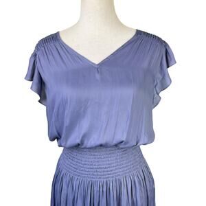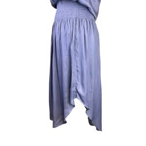 Mustard Seed Lavender Purple Blue Smocked Satin Curved Hem Midi Dress
