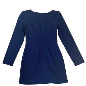 Mustard Seed navy blue dress with rounded neckline. Long sleeve waist opening with center ruched and detail mini links. Fully lined. Very cute and sexy.!! Excellent condition.