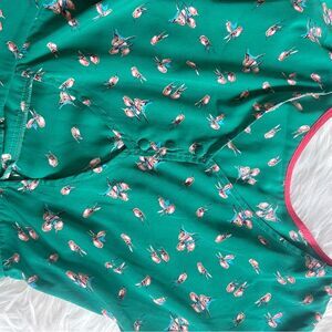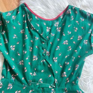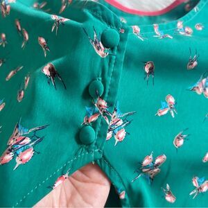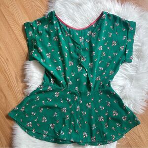 Mustard Seed Peplum Top in Green Bird Print with beautiful Back Cutout details, buttons and zipper closure. Size Small.