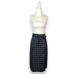 Mustard Seed Retro Windowpane Check Tie-Waist Midi Skirt