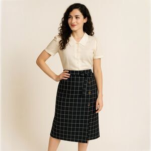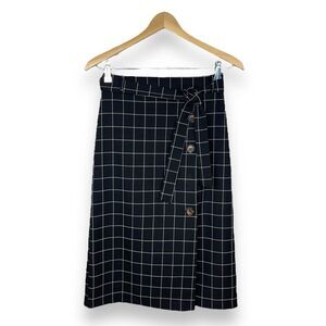 Mustard Seed Retro Windowpane Check Tie-Waist Midi Skirt