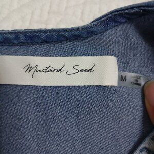 Mustard Seed Romper Short Womens Denim-Look Elastic Waist V-Neck Pockets Size M