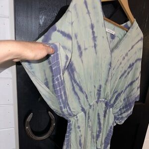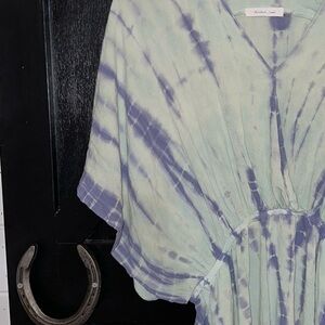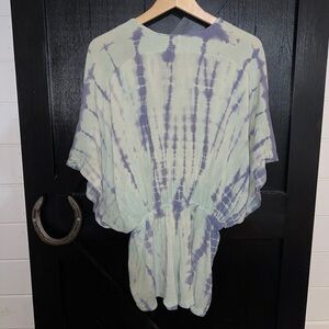 Mustard Seed Tie-Dye Loose Lightweight Beachy Boho V-Neck Romper Sz S
