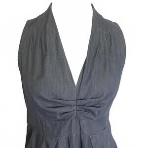 Mustard Seed Women's Large Denim Blue Halter Style Embroidered Knee Length Dress
