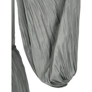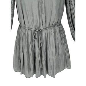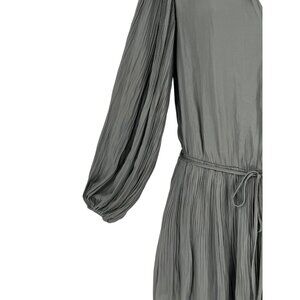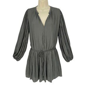 Mustard Seed Women's Mini Dress Pleated Detail Skirt & Sleeves Gray Balloon L/S Belted V-Neck Lined Elastic Waist Size S