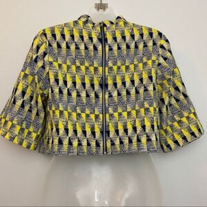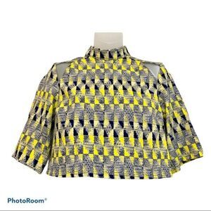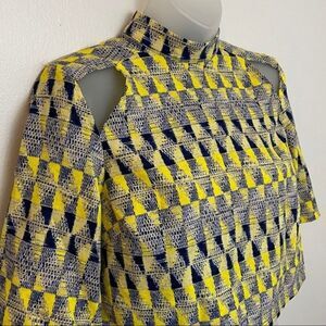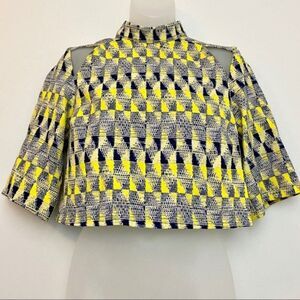 Mustard Seed Yellow Blue Geo Print Crop Top Size S