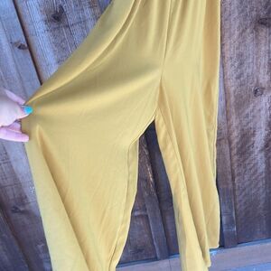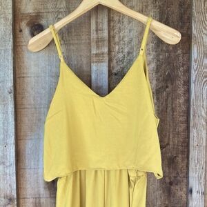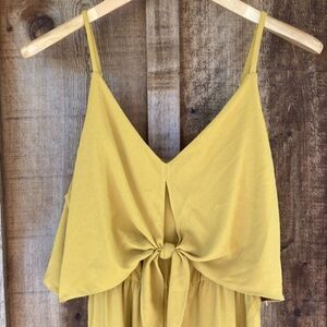 Mustard Seed Yellow Goldenrod V-neck Popover Tie Front Wide Leg Jumpsuit