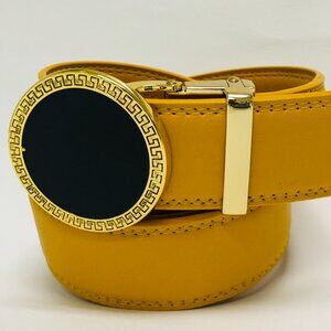 Mustard Yellow Belt Women Men Gold Automatic Buckle Slide Belt Leather Jeans New