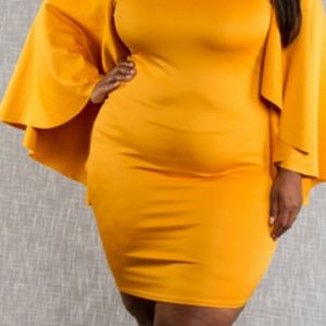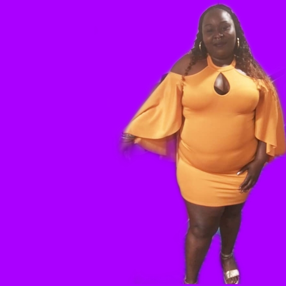 Yellow mustard dress with the peekaboo shoulders and the keyhole this dress is really beautiful the bodycon dress this dress is true to its size