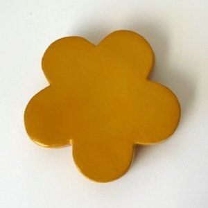 This very pretty yellow flower tea light candle holder is handmade with paper mache! It is painted with acrylic paint and coated with a polyurethane finish. The candle holder measures 3.5 inches in width and 0.75 inches in height.