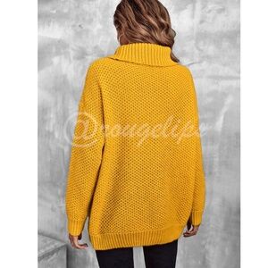 Mustard Yellow Knit Turtleneck Pullover Sweater Long Sleeve Loose Fit Oversized