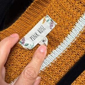 Mustard Yellow Pink Rose Medium Striped Open Cardigan Knit