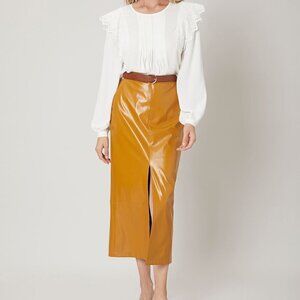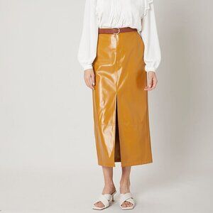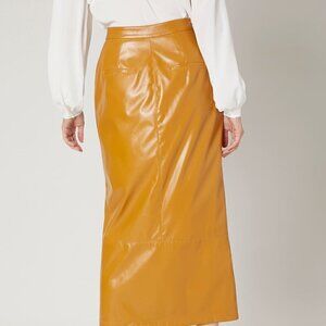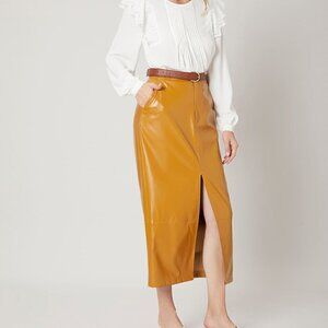 Mustard Yellow Preppy Womens Faux Leather Split Skirt