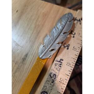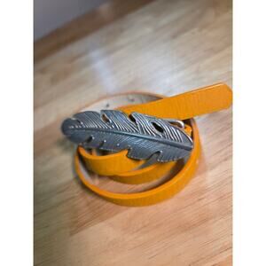 Mustard Yellow Skinny Belt With Silver Toned Feather Buckle 41"