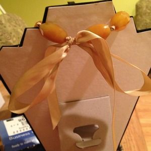 Knotted with double sided satin ribbon; unique and one of a kind