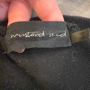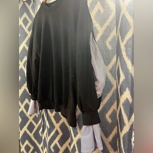 Mustard seed Black Sweater with Blue and White Striped sleeve pop outs Size s