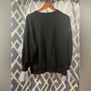 Mustard seed Black Sweater with Blue and White Striped sleeve pop outs Size S