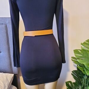 Mustard yellow Faux Leather Rhinestones Buckle Tan Belt 43" Long