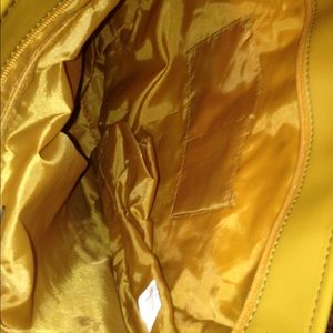 This is a big mustard yellow purse. I'm not sure what brand it is. It's in new condition with no tags