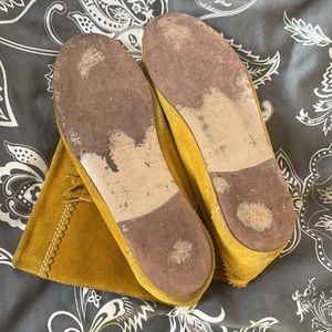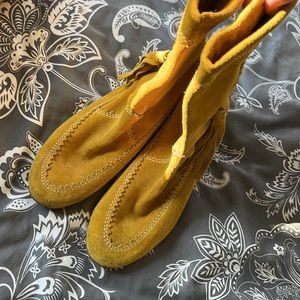 Made in Italy genuine leather suede, European size 37, a little scuffing on left front of each shoe and on the bottom back of the Right shoe and normal wear at the top of cuff.