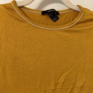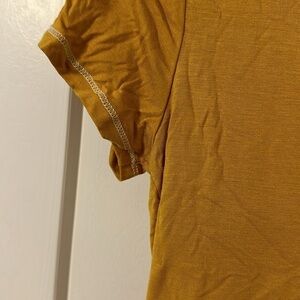 Mustard yellow t shirt with white stitch detail! Super soft and stretch material.