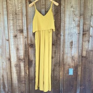 Mustard Seed Yellow Goldenrod V-neck Popover Tie Front Wide Leg Jumpsuit