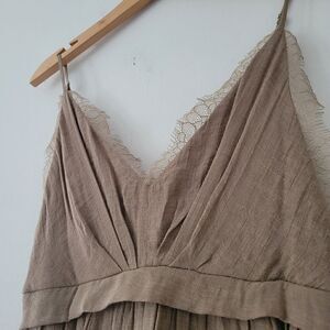 Mustard Seed Brown Mini Dress Spaghetti Straps Lace Trim S