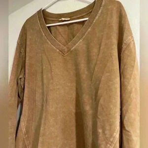Mustard/golden distressed casual long sleeve size L v neck great condition. Cotton with some stretch. Size large and breathable! Very cute with jeans or for lounge. Long sleeve t shirt