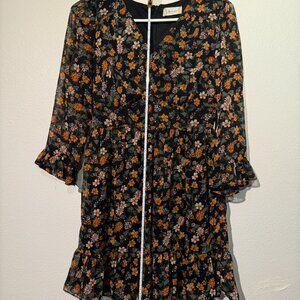 Muted floral print Black 3/4 sleeve dress Perfect for fall!