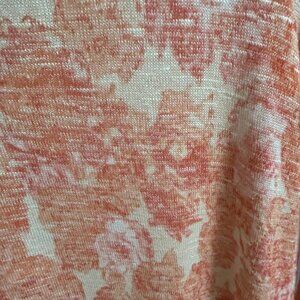 Muted peachy-pink knit floral top w/ ruffled bottom