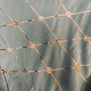 Beautiful thick velvety textured high quality luxury fabric piece with muted blue and gold embroidered diamond pattern. A few feet long, measurements coming soon.