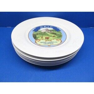 Muti French Cheese Luncheon Snack Plates Set Of 4 Plates You Will Be Getting 4 Cheese Snack/Luncheon Plates In Very Good Condition. Two Of The Plates Are "Camembert" And Two Plates Are "Parmigiano" Plates. All Are 9" In Diameter. In Addition I'm Including 1 "Brie" Plate At No Additional Charge That Has A Chip As Pictured In The Last Photo. They Will Be Wrapped Carefully And Fully Insured. They Come From A Smoke Free Environment.