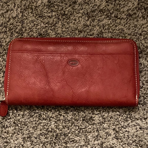 Red Muti wallet. Never been used, comes with a check book cover/card holders.