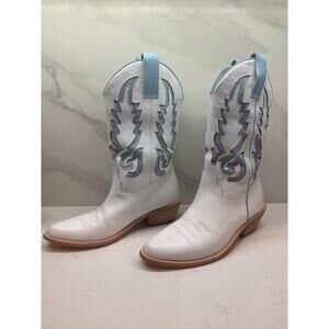 Free People Mutma Women’s Size 8 (EU 38) Ivory/White & Baby Blue Colorado Springs Western Leather Boots