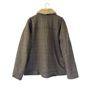 Mutual Weave Mens XLarge Coat Brown Plaid Wool Faux Shearling Collar Outdoors