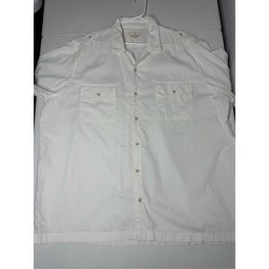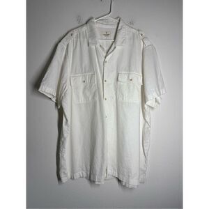 Mutual Weave Shirt Mens 2XL White Linen Blend Short Sleeve Button Down