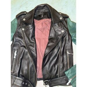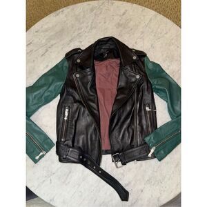 Muubaa Womens 100% Lamb Leather Jacket Size 2 Taimar Black/Hunter Green Leathe
