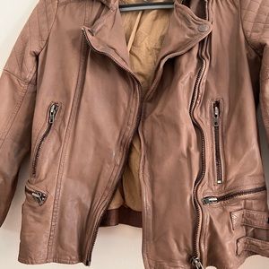 Beautiful jacket in their signature ‘worn in’ look. Hard to do the color justice on photos…it’s the most beautiful, creamy taupe with bronzy/antique rose gold zippers & hardware. I really wanted this to work but it’s just too small on me.