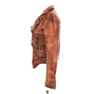 Muubaa x Free People Edgy Distressed Brown Leather Moto Biker Jacket